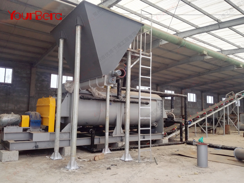 空心軸上密集排列著楔型中空漿葉,熱介質(zhì)經(jīng)空心軸流經(jīng)漿葉。單位有效容積內(nèi)傳熱面積很大,熱介質(zhì)溫度從-40℃到320℃,可以是水蒸汽,也可以是液體型:如熱水、導熱油等。間接傳導加熱,沒有攜帶空氣帶走熱量,熱量均用來加熱物料。熱量損失僅為通過器體保溫層向環(huán)境的散熱。楔型漿葉傳熱面具有自清潔功能。物料顆粒與楔型面的相對運動產(chǎn)生洗刷作用,能夠洗刷掉楔型面上附著物料,使運轉(zhuǎn)中一直保持著清潔的傳熱面。漿葉干燥機的殼體為Ω型,殼體內(nèi)一般安排二到四根空心攪拌軸。殼體有密封端蓋與上蓋,防止物料粉塵外泄而充分發(fā)揮作用。