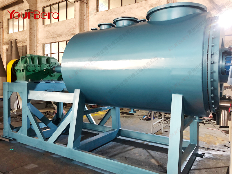 (1) 適應(yīng)性強(qiáng):應(yīng)用較廣,由于耙式真空干燥機(jī)利用夾套加熱、高真空排氣,所以幾乎對所有不同性質(zhì)、不同狀態(tài)的物料都適應(yīng),特別適應(yīng)易爆、易氧化、膏狀物料的干燥。